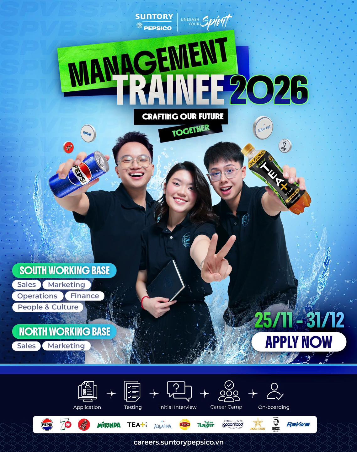 Các ứng viên tài năng ơi, hãy sẵn sàng “Bùng Đam Mê – Tỏa Khí Chất”, chớp lấy cơ hội phát triển toàn diện và bứt phá sự nghiệp ngành FMCG cùng chương trình Suntory PepsiCo Management Trainee 2026 ngay hôm nay!