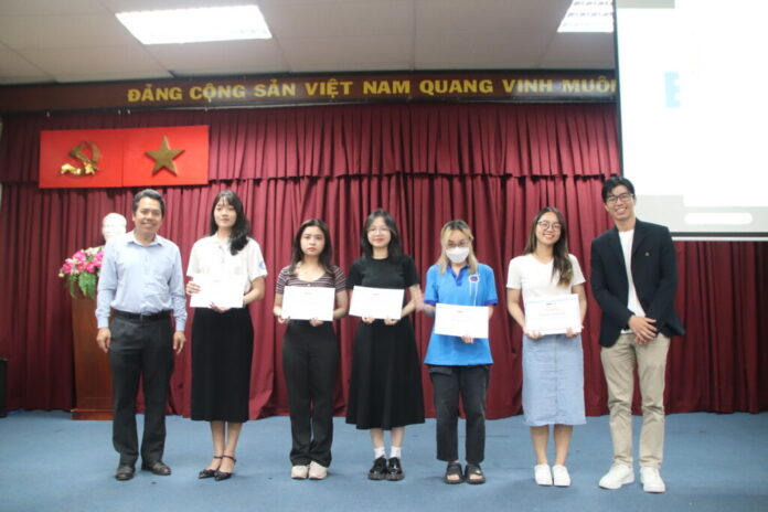 Đại diện Antdemy Corp Anh Nguyễn Văn Tân và Đại diện Trường Đại học Bách Khoa trao giấy chứng nhận cho các bạn sinh viên đạt giải